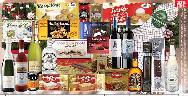 - Puede contener frutos secos (almendra), gluten, lácteos (quesos), soja/cacao (chocolates) y sulfitos (vinos/cavas). Revisar etiquetas antes de consumir.